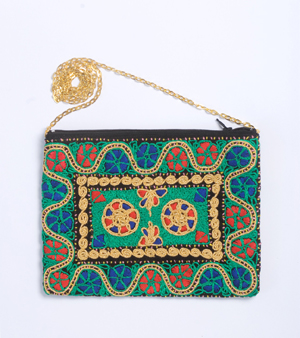 This gorgeous evening bag is fully embroidered on both sides with the 'tahriri' couching stitch embroidery, a local specialty of Bethlehem. Zipper closure.