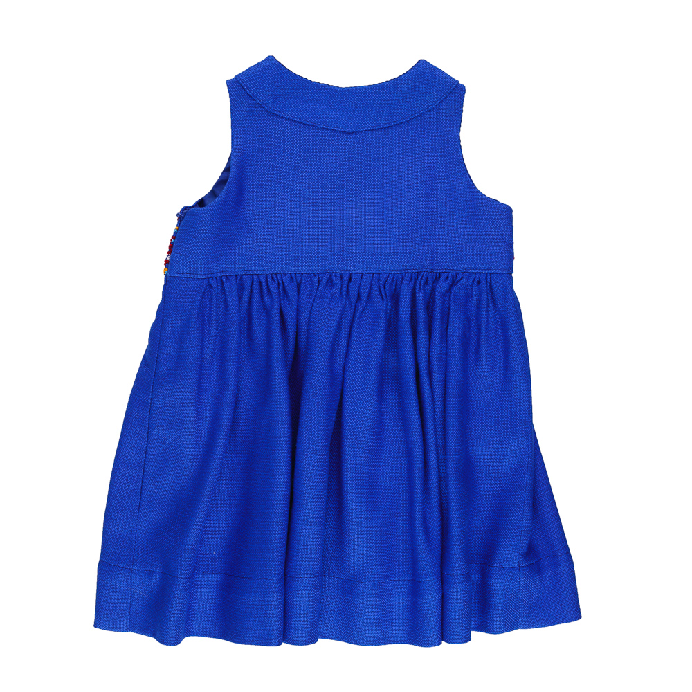 A very special baby dress with Palestinian embroidery. Viscose 100%, lined, with a 5-cm hem at the bottom. Zipper on the side. Available in sizes 3-6 months, 6-12 months, and 12-18 months.