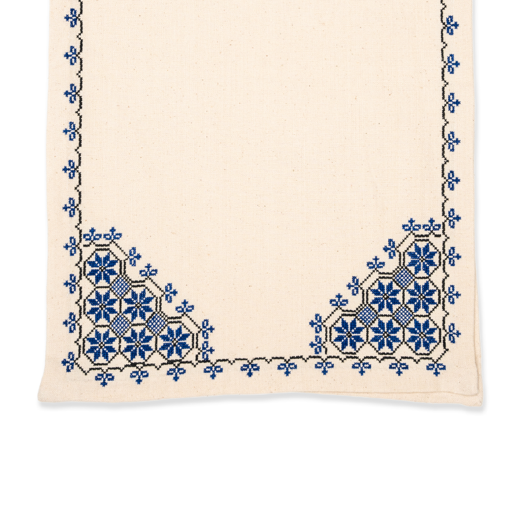 This gorgeous table runner is one of our long-sellers, hand-embroidered with the timeless 'Canaanite Star' design. Hand-trimmed finishing. Made with 100% cotton fabric, and pre-washed to prevent shrinkage.